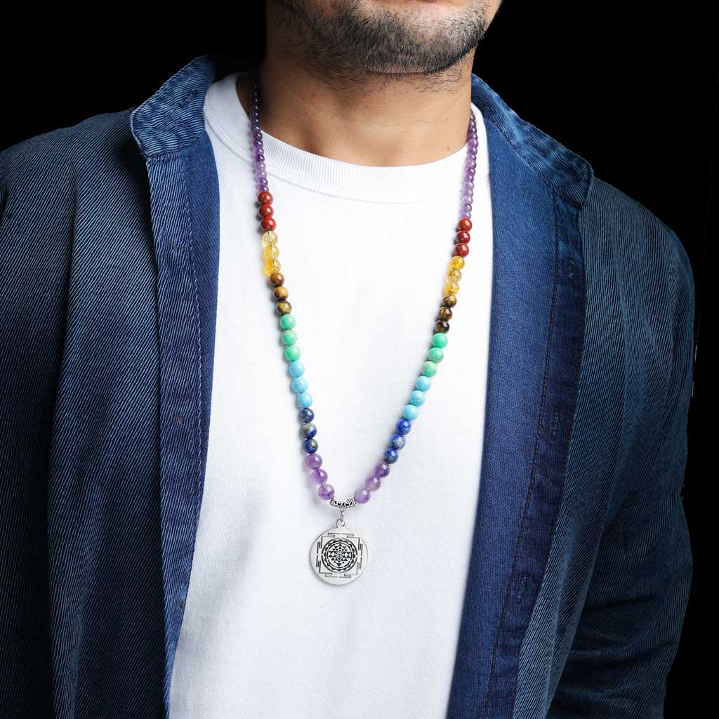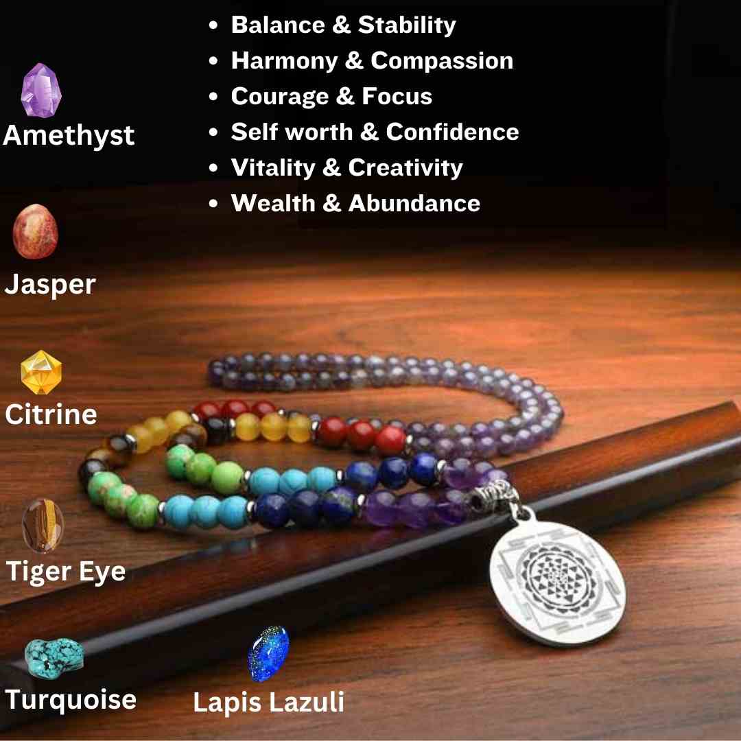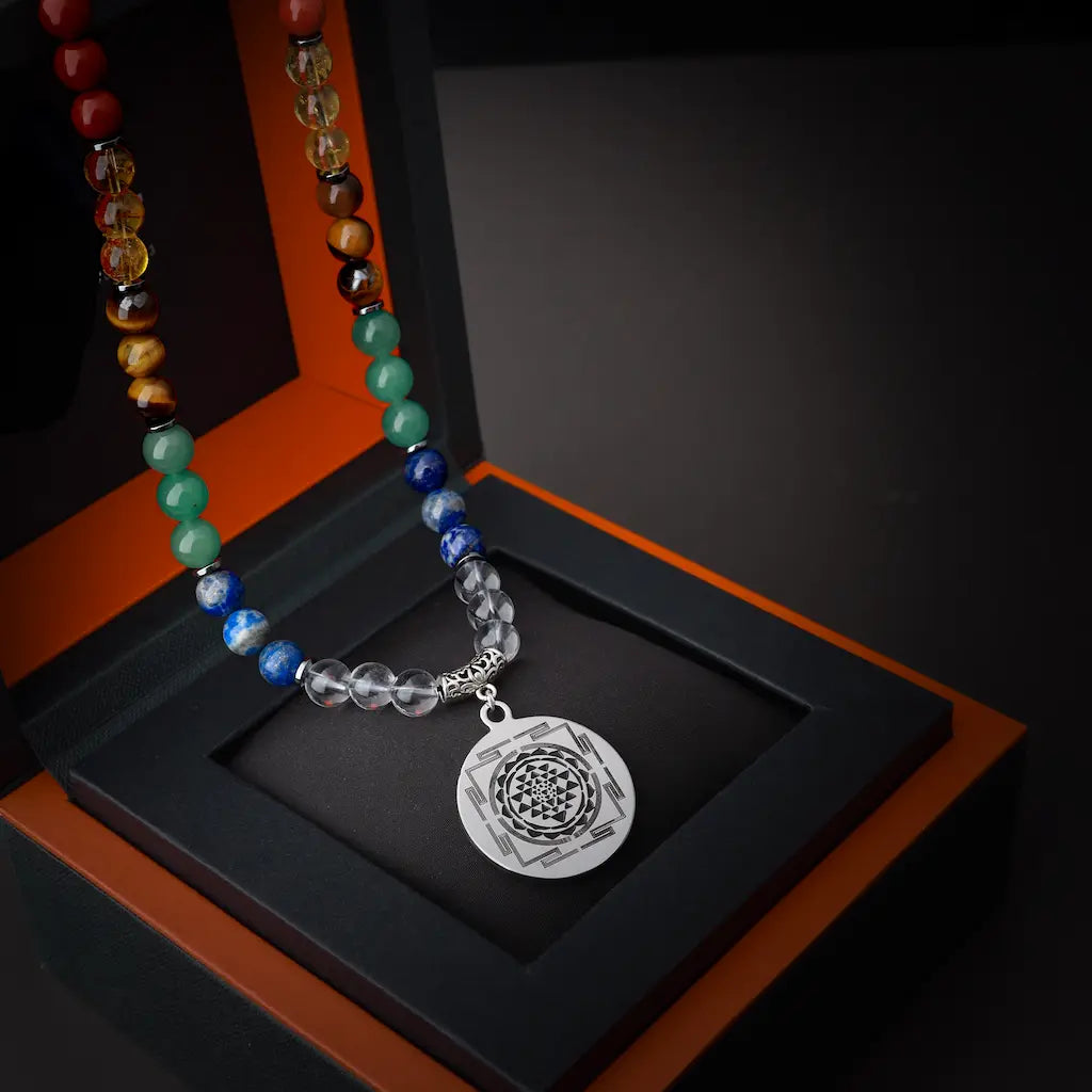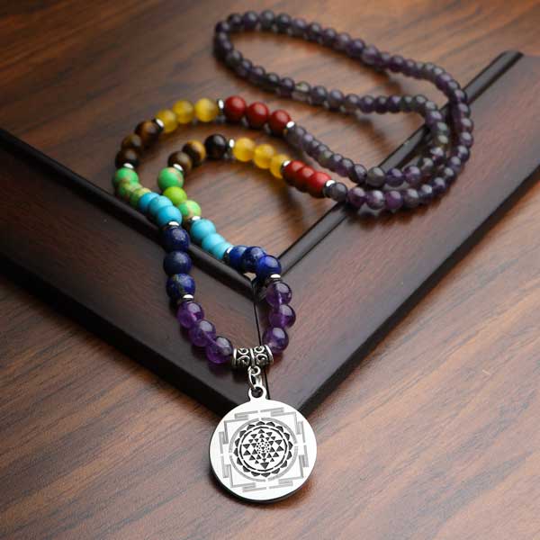 108 Sri Yantra 7 chakra Pendant Mala exhibits the true beauty with aesthetic appeal, You will not keep Your eyes off this divine symbol. If You love yoga, meditation and practice positivity and peace in your life then this is the gift, you can give yourself, family and friends