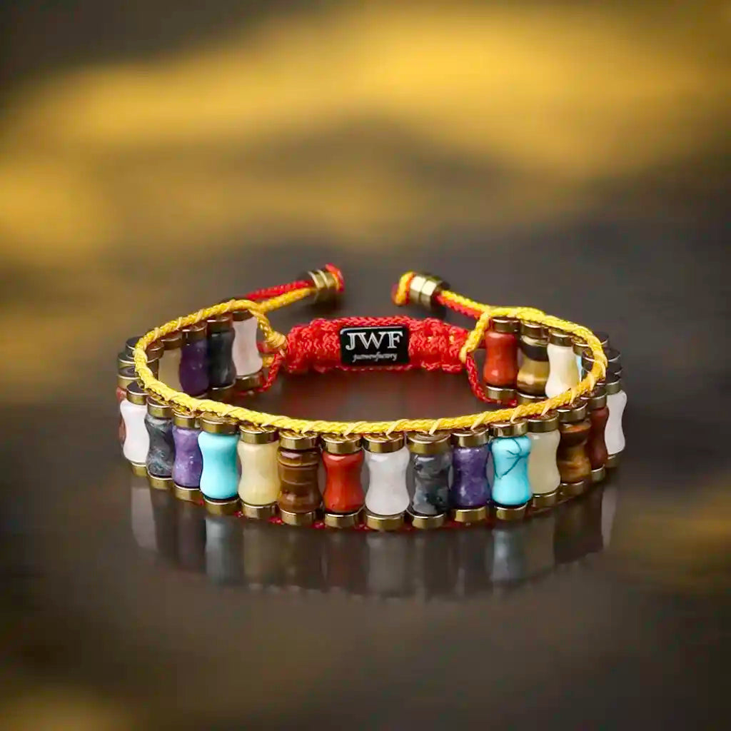 This handmade 7 Chakra Bracelet brings together seven natural stones, each resonating with one of the body's primary energy centers. When your chakras are aligned, your thoughts, emotions, and actions follow a natural rhythm—calm, confident, and clear.