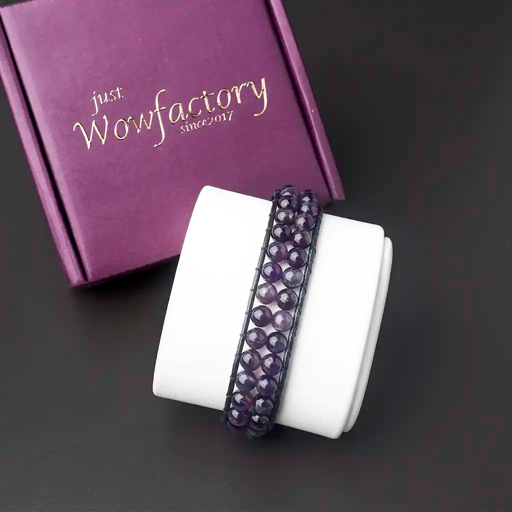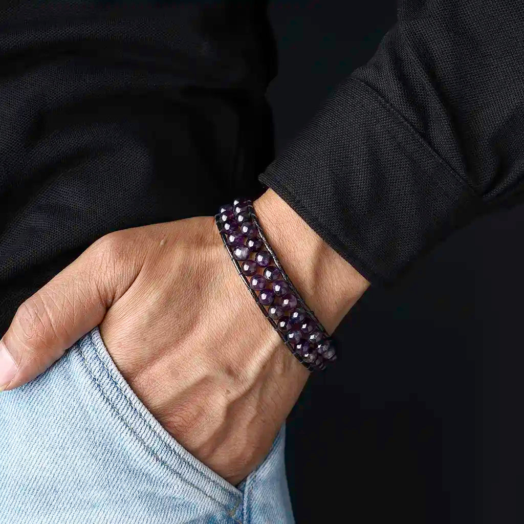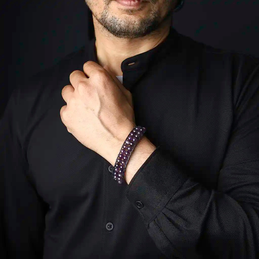This bracelet is strung with 10mm faceted Amethyst beads—each one carrying a stillness that’s hard to explain but easy to feel. It doesn’t scream for attention; it simply sits on your wrist like a gentle talisman that you’re allowed to breathe, to slow down, and to realign.