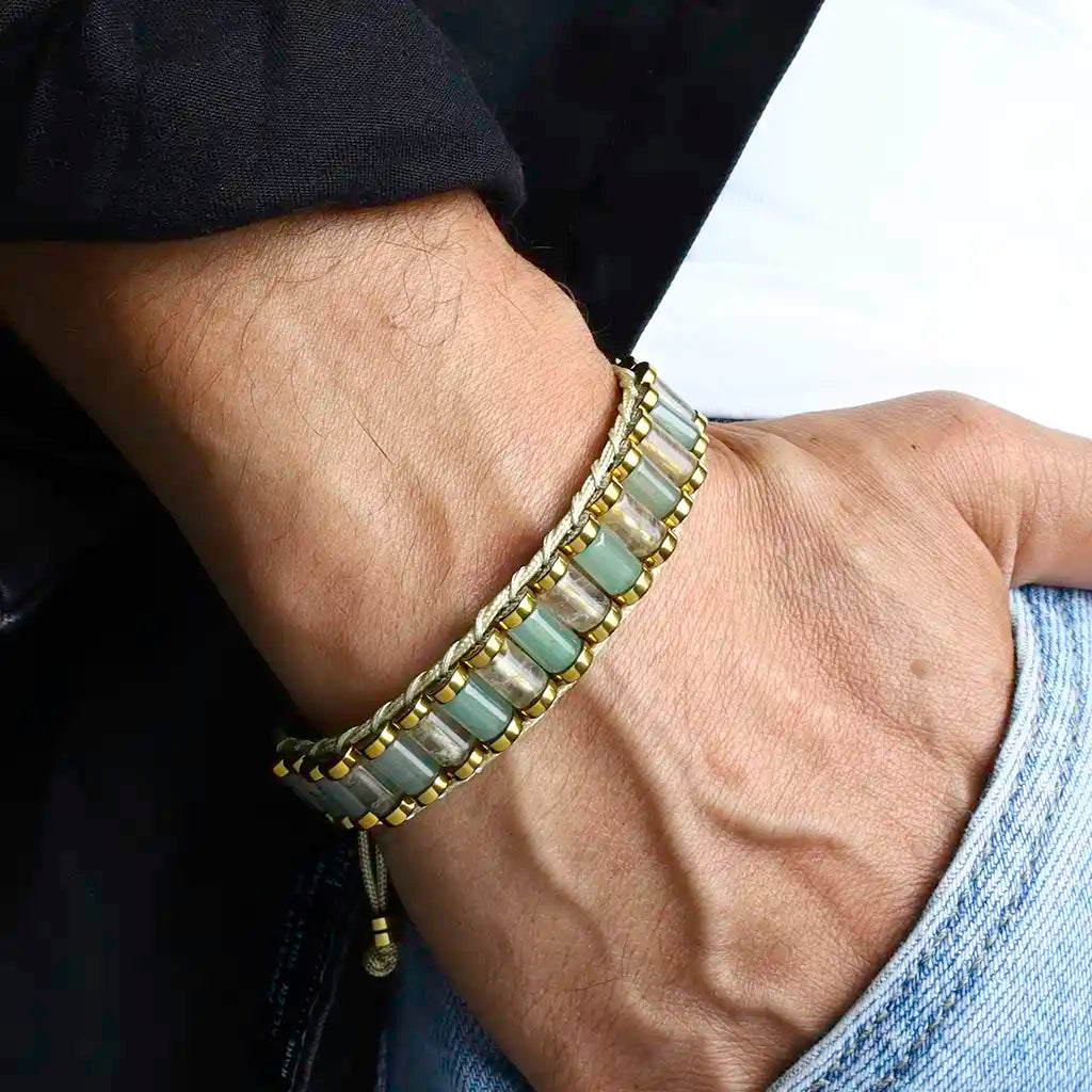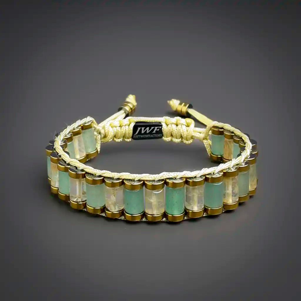 inspired by tribal culture of our country and ingenious artistry and craftsmanship, The aventurine and citrine bracelet is source to abundance, fame, advancement and growth. The 6mm beads are braided sequentially to ravel out the true elegance to your wrist once you are sure to bounce ahead with open and recipient mind