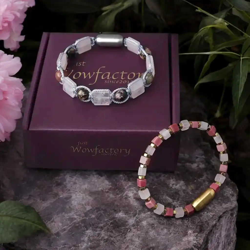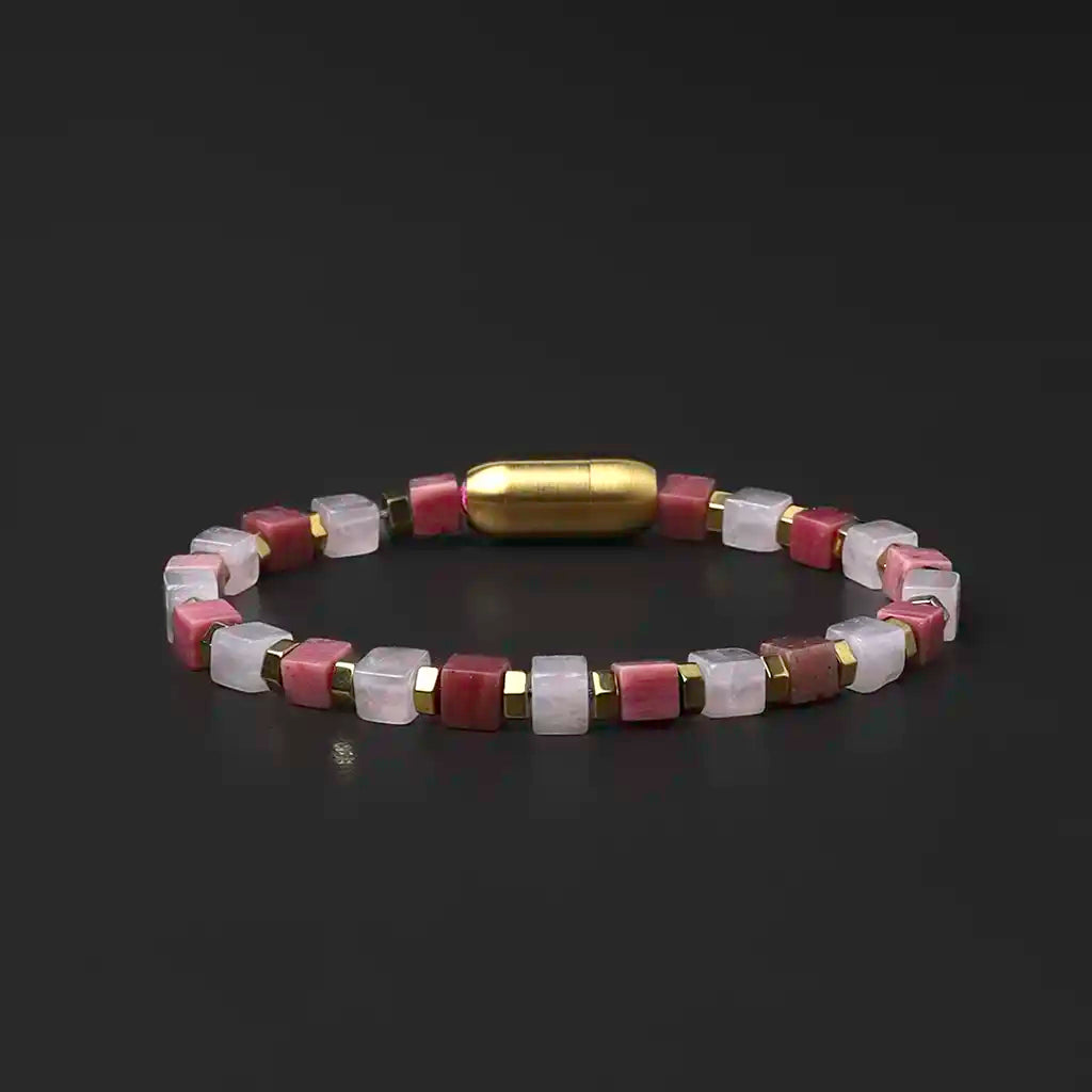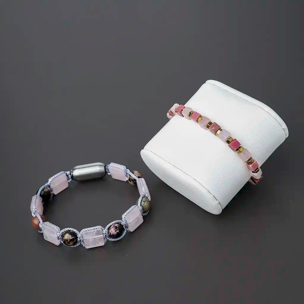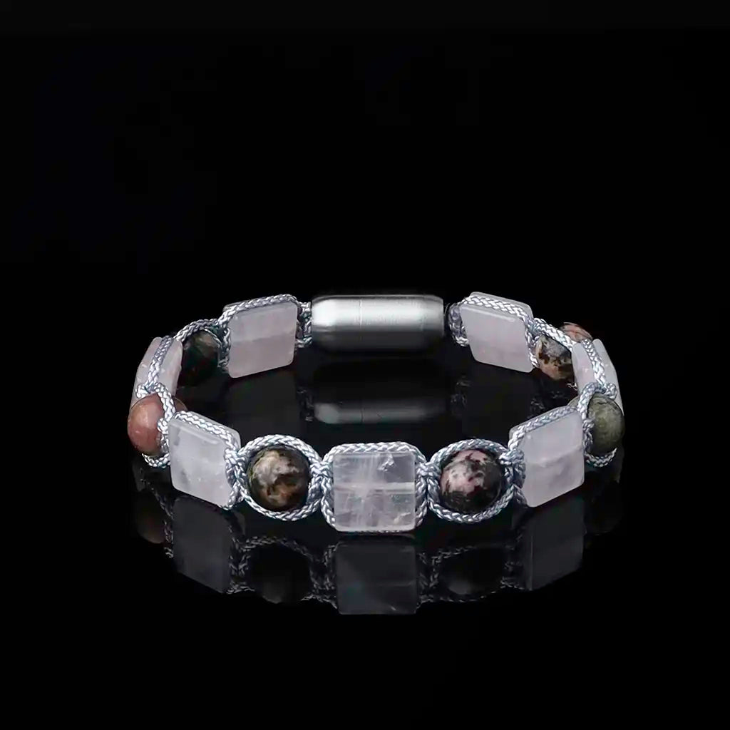 Some love doesn’t need grand gestures — it shows up every day in small, quiet ways. This couple’s bracelet pairs Rose Quartz and Rhodonite, crafted for those who nurture love through care, understanding, and a shared emotional depth.