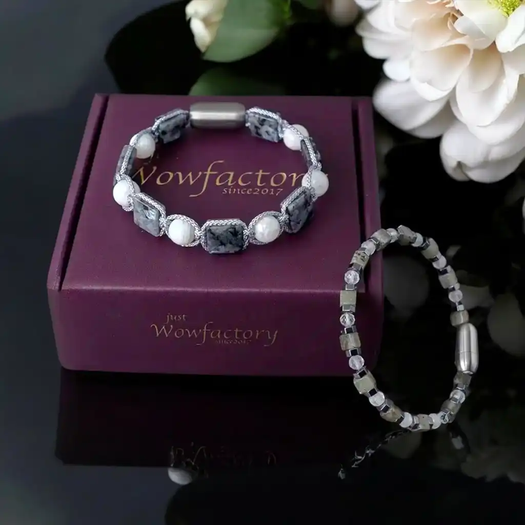 Relationships may move with the ebb and flow in the river of life , but when belief and faith form the current beneath, love always finds a way upward. Moon stone and labradorite together in pairs of bracelets are a tribute to that kind of love — intuitive, resilient, and divinely timed
