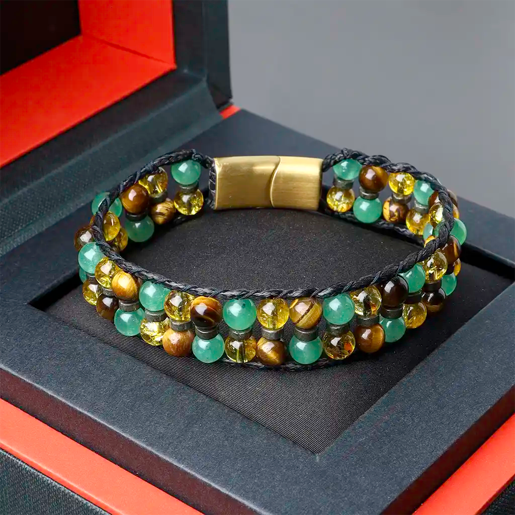 Pulling through challenging times is never as easy as it is said or claimed. Yet, continuity in action and the courage to innovate help us navigate the river of possibilities. There may be moments when life pulls you back, but your boundless potential will always find a way to rise—lifting you to the heights you truly deserve. In a world full of uncertainties, financial stability and personal growth require both effort and the right mindset. That’s why we’ve designed the Money & Wealth Magnet Bracelet with the help of healers and astrologers, who recommended us to present these designs to you with powerful stones like Pyrite, Tiger Eye, Malachite, Aventurine, Clear Quartz and Citrine.