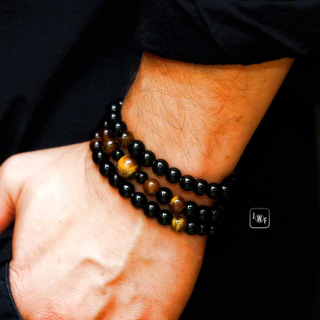 - Bead Size: 8mm BothTiger Eye and obsidian