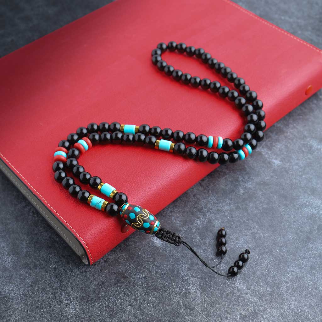 A Gallant soldier of good karma Obsidian Turquoise Tibetan Mala