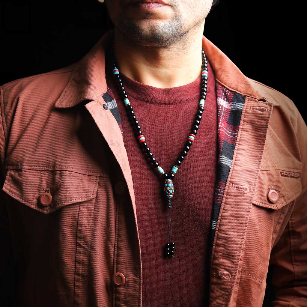 Pull yourself up to tread gallantly on the path of tranquility. Give a cold shoulder to your worries and ennui. Keep the virtuous obsidia turquoise mala as totem of peace and energy in the journey. You are soldier of establishment of the truth, decimator of doubt and seeker of harmony.