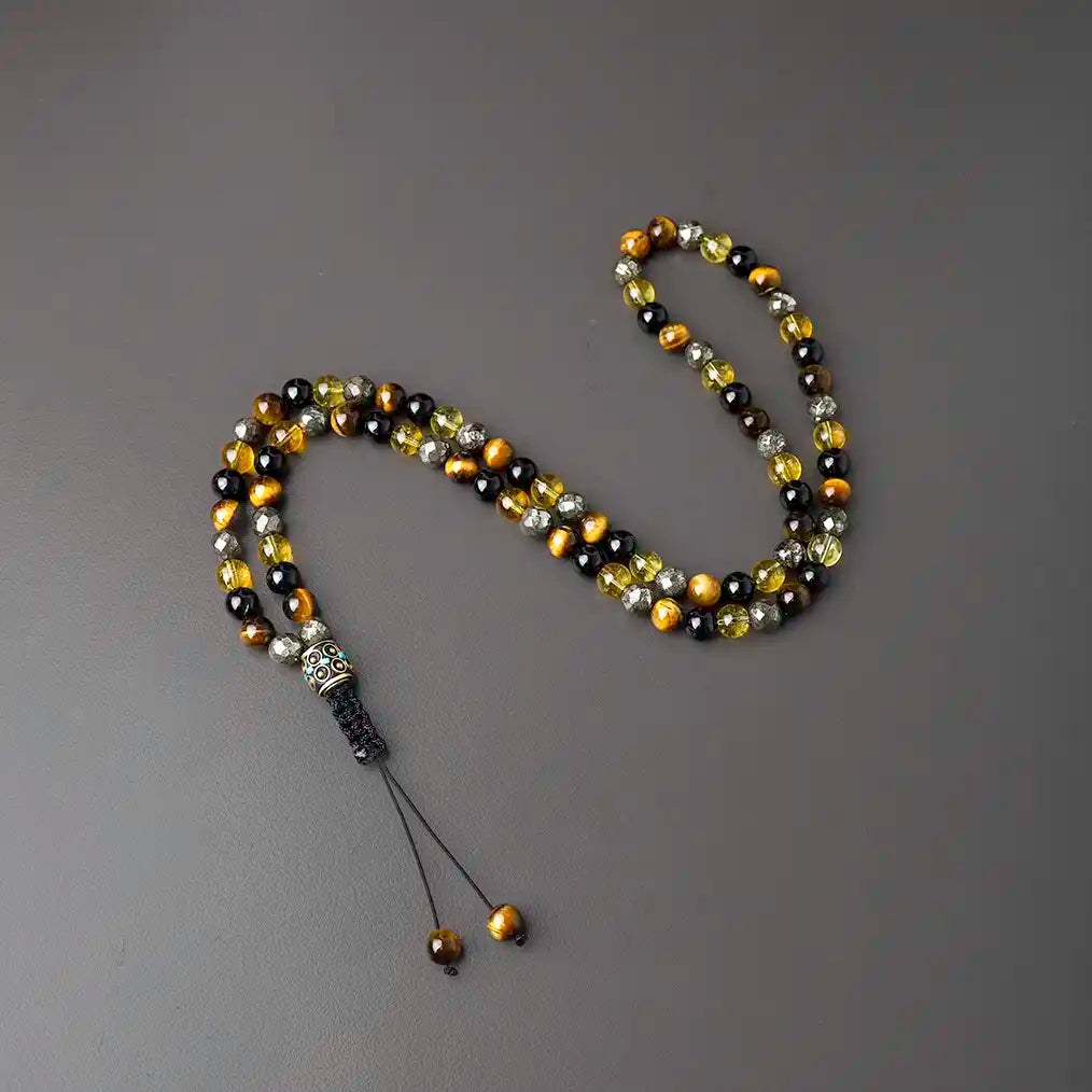 Ambition And Achievement Pyrite Citrine Tourmaline Tiger Eye Mala