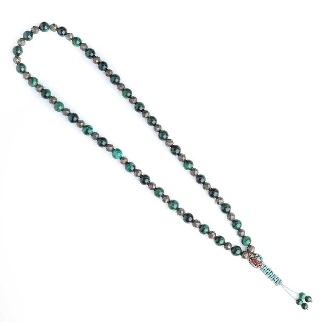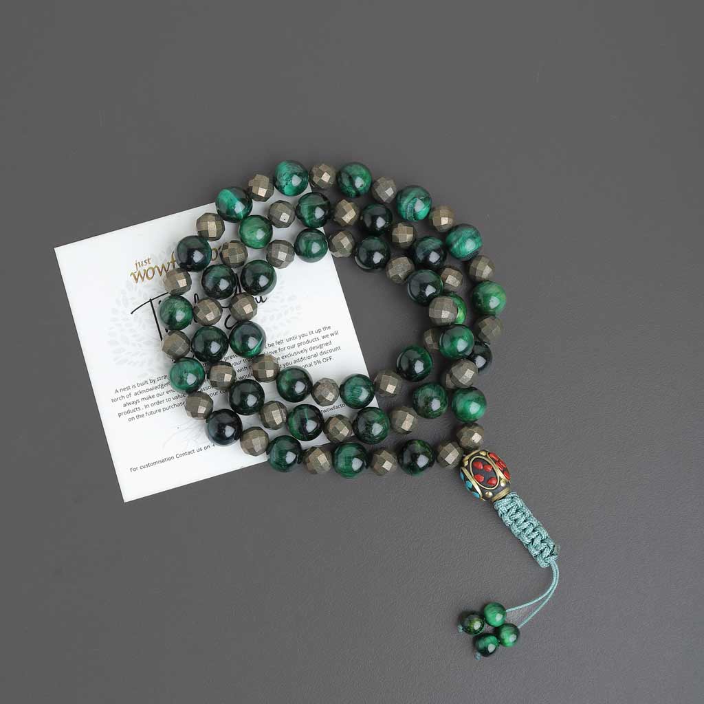 Live To Succeed Pyrite Green Tiger Eye Mala Necklace