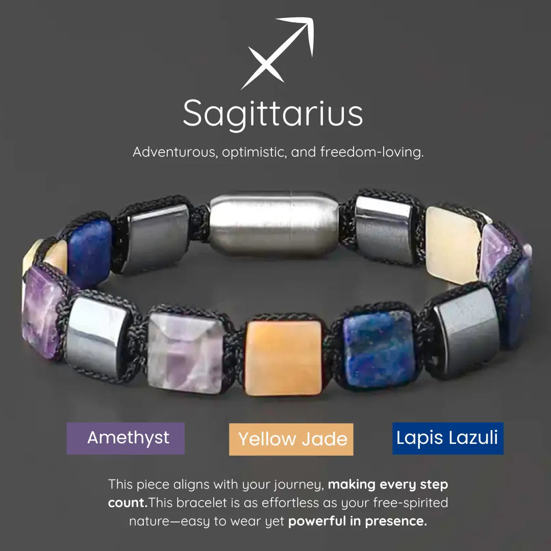 “Sagittarius, you are the eternal seeker, the wanderer with a heart full of wonder and eyes fixed on the stars. This bracelet is a tribute to your resilience, optimism, and boundless curiosity. Life may present challenges, but you always find a way to turn them into opportunities. Let this bracelet remind you that every step forward is part of your larger journey to wisdom and fulfilment.”