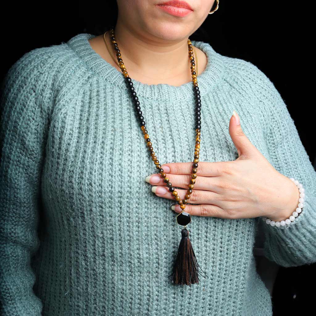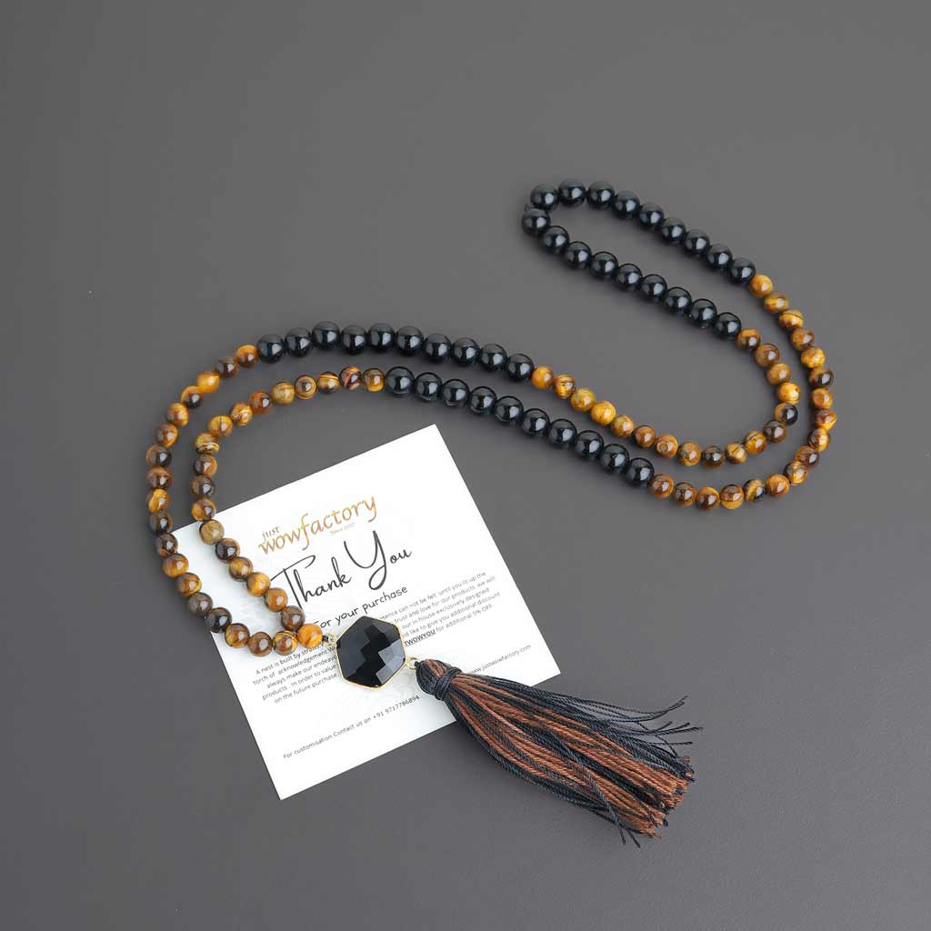 The magical spell is slated to unwind the real you and your potential from the swathes of tumultuous journey. Because that journey has yielded a consequential success. The destined rise is waiting you with full extended arms to embrace each and every part of your past hard work. Its time to reap the benefit and gloat about your endurance and grit with our magnificent tiger eye tasselled mala of hope, courage, conviction, motivation and jubilation.