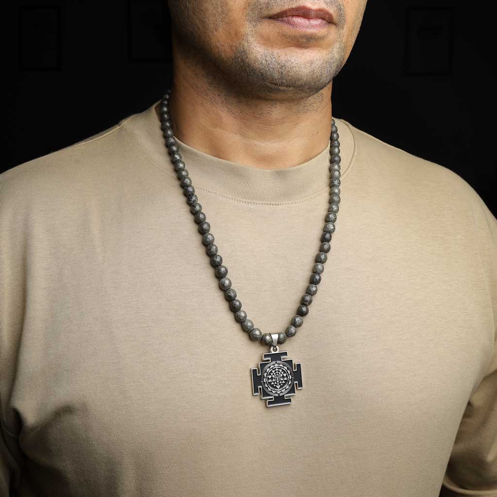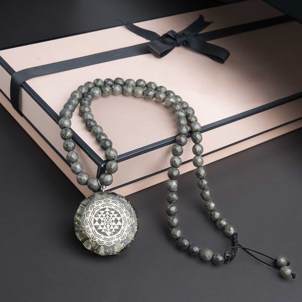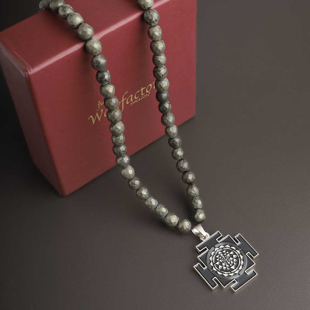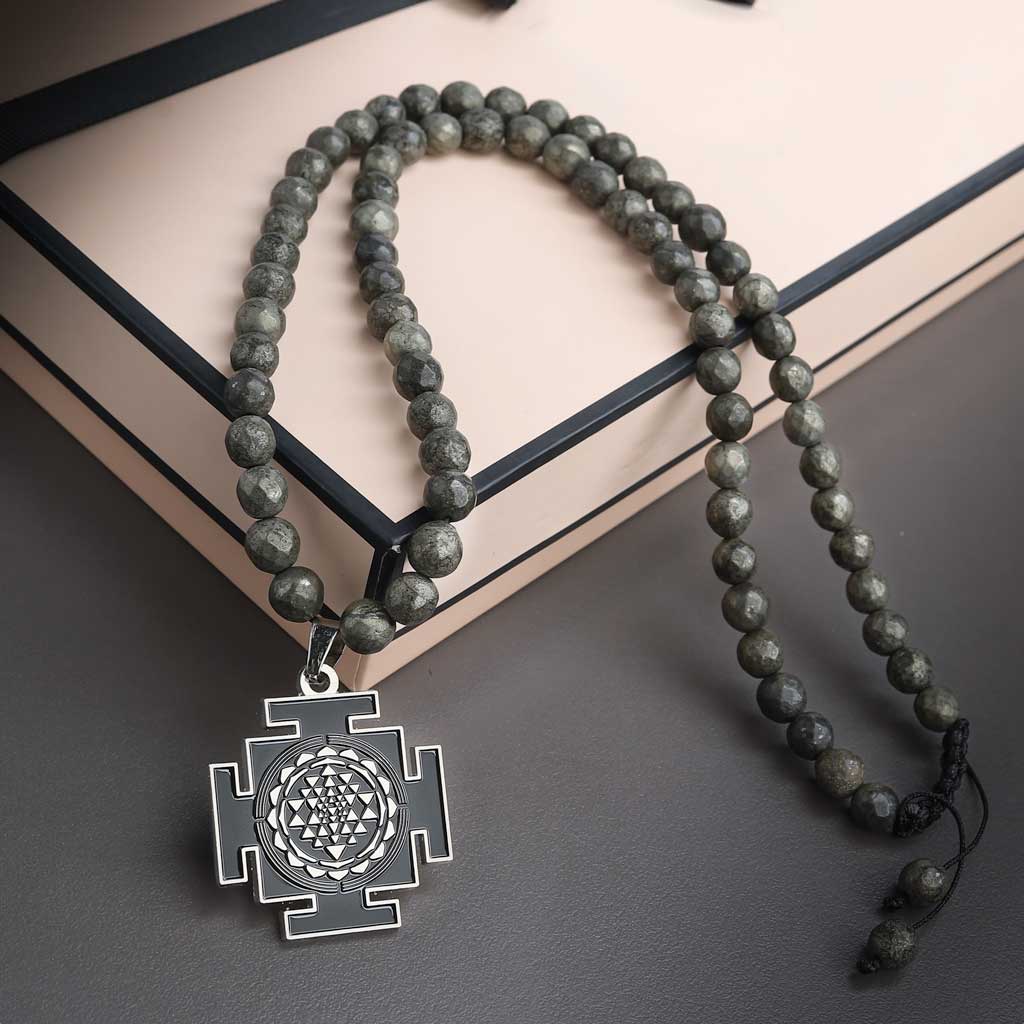 The Wealth Raising Sriyantra Pendant Pyrite Mala